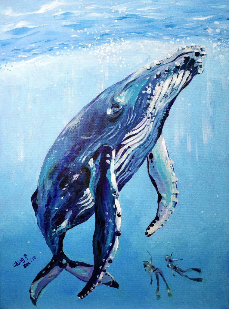 I paint the living energy of nature — its strength, tenderness and wisdom. From whales that move like silent constellations to fleeting botanical life, my work explores nature as eternal and ever-changing. Using layered acrylics, fluid brushwork and shifting light, I seek to capture emotional presence and movement. My paintings celebrate connection and wonder, inviting viewers to feel calm, joy and belonging in a world that moves too fast.